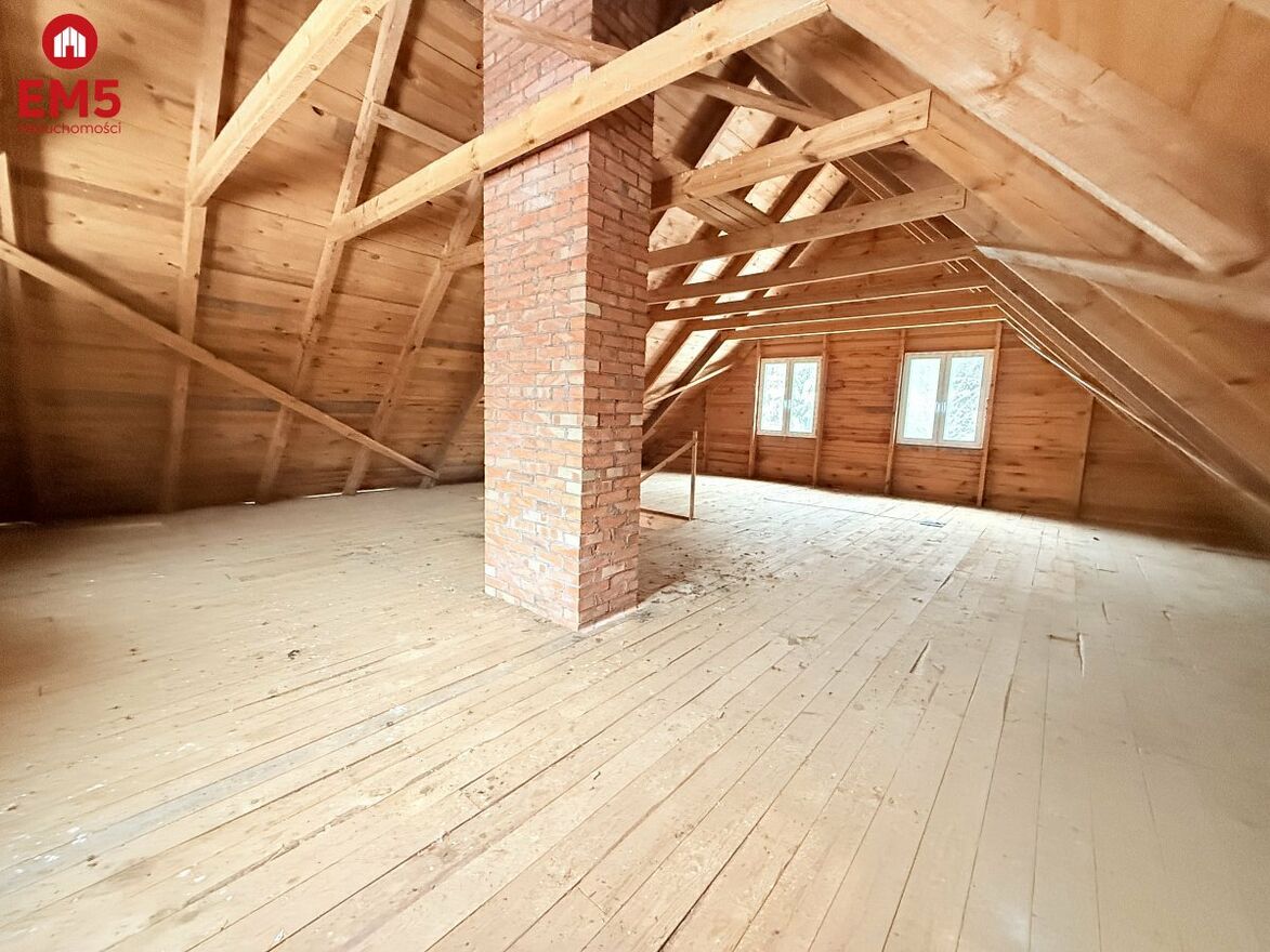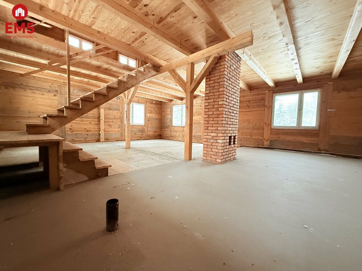 Na działce o łącznej powierzchni 6 991 m2 znajduje się drewniany dom z bali sosnowych, parterowy z poddaszem użytkowym, zaprojektowany w ramach zabudowy zagrodowej. Naturalne drewno nie tylko nadaje budynkowi wyjątkowy charakter, ale również tworzy zdrowy mikroklimat, sprzyjający dobremu samopoczuciu domowników.